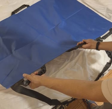 Uso : para levantar al paciente, para darlo vuelta, reposicionarlo , sentarlo o transferirlo. En caso de emergencia, también puede usarlo para evacuar personas y transportar mascotas.