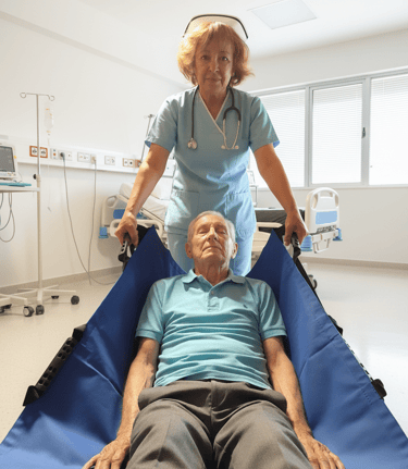 Nuestra manta de traslado hace más seguro y liviano el movimiento del paciente
